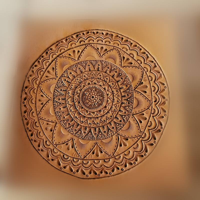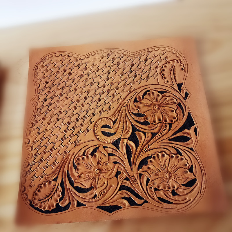 Hand engraving genuine leather table cushion leather carving technique Gift pendulum decorated double head layer of cow leather pure hand to stick to heavy work personality