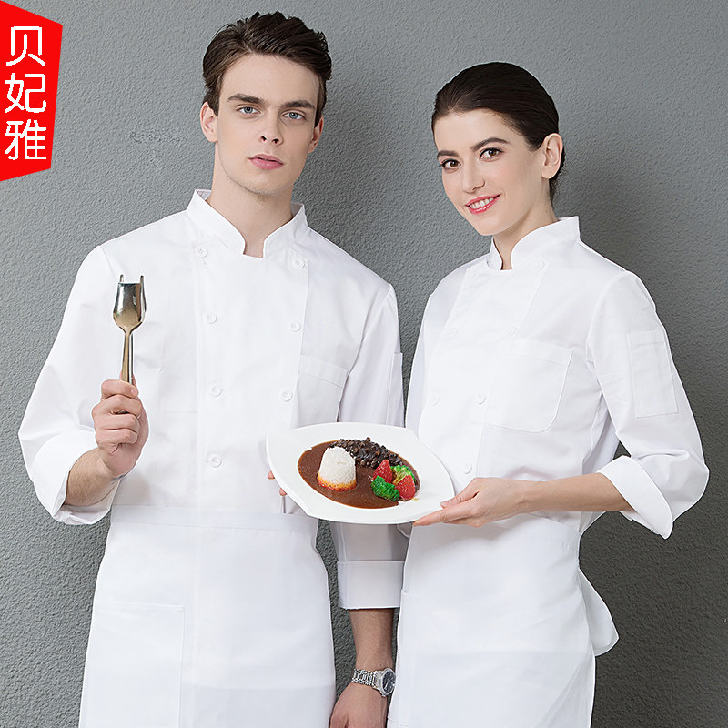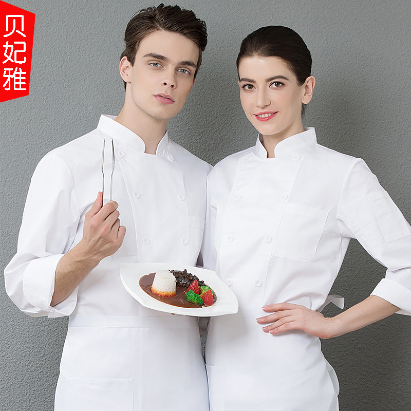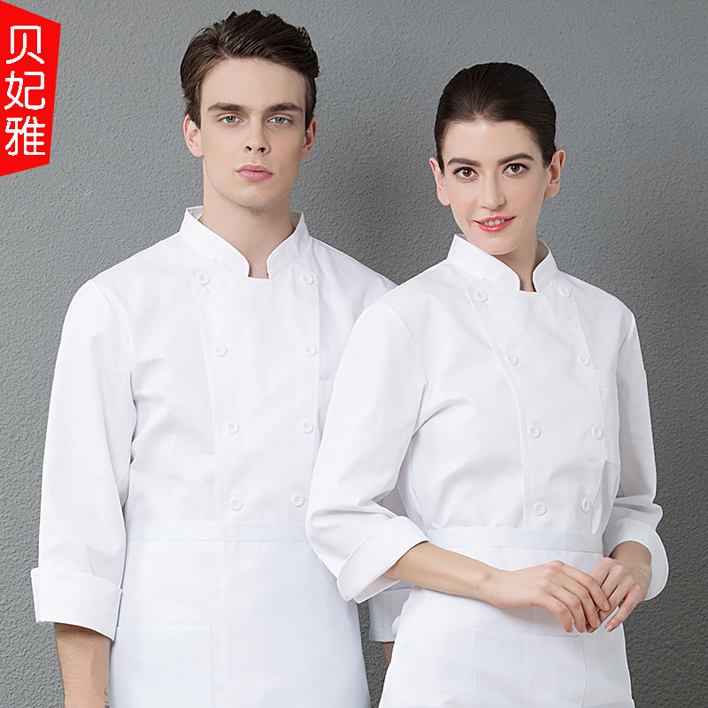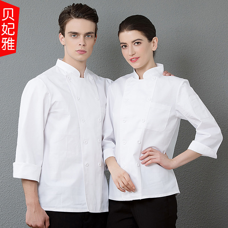Chef's clothing long-sleeved men's and women's kitchen canteen restaurant hotel catering kitchen chef double-breasted work clothes autumn and winter clothing