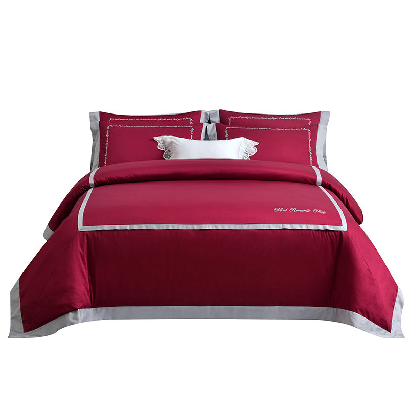 80 long suede cotton four pieces full cotton pure cotton gon satin embroidery New weddings Wedding wedding Five Star hotel bed linen quilt cover