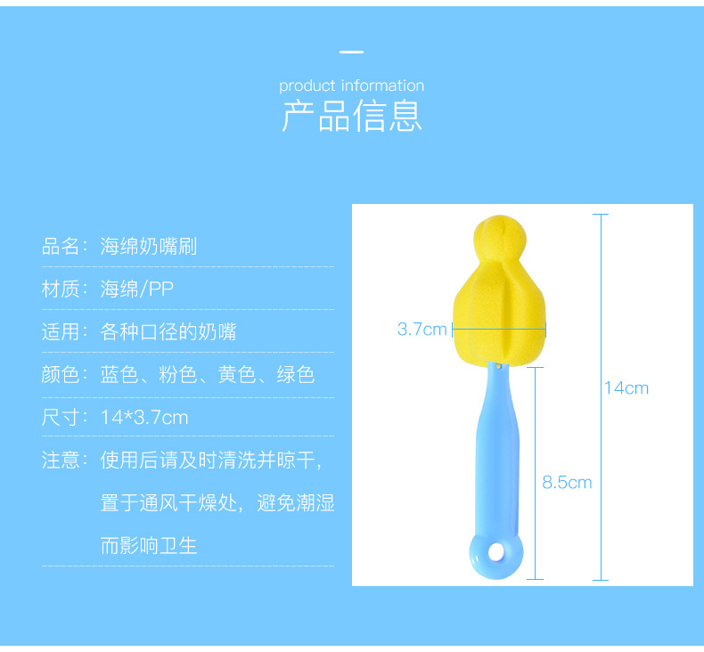 10 baby pacifier brushed sponge washing bottle brushed suit sponge brushed head portable sponge 360-degree rotating long handle
