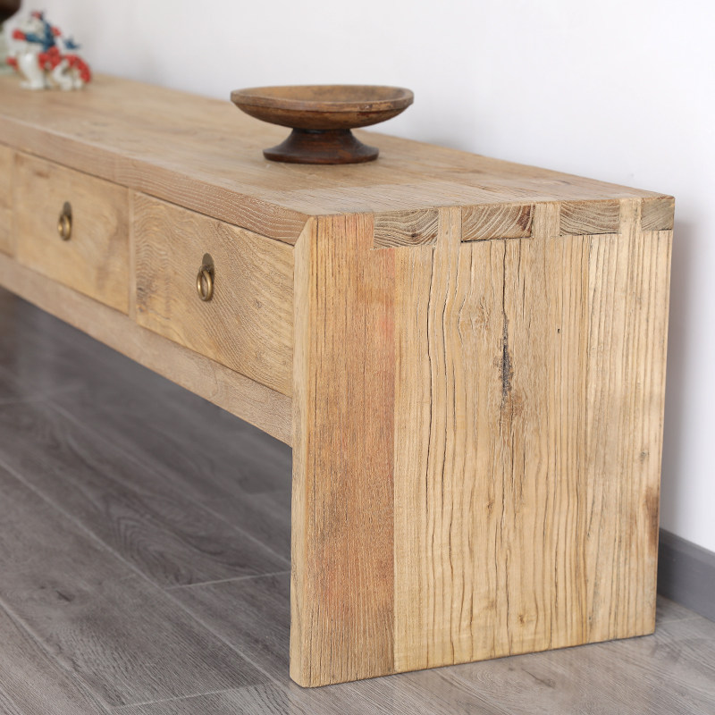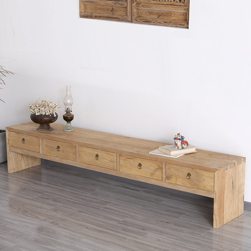 Old Elm TV cabinet Container Modern simple living room CD cabinet Solid wooden wind old door board furniture cabinet