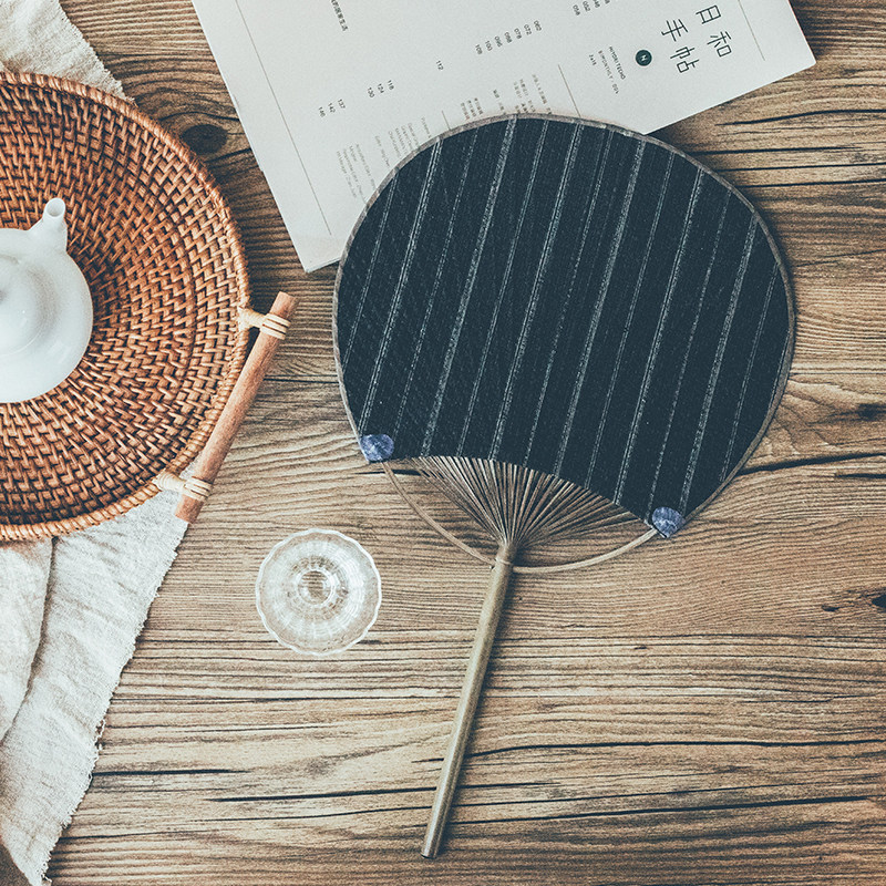 Art China Wind Han Chinese Fan Lady Gufeng Cotton Hemp Round Fan Summer Bamboo Tub Handmade Busfan Day Style Group Fan