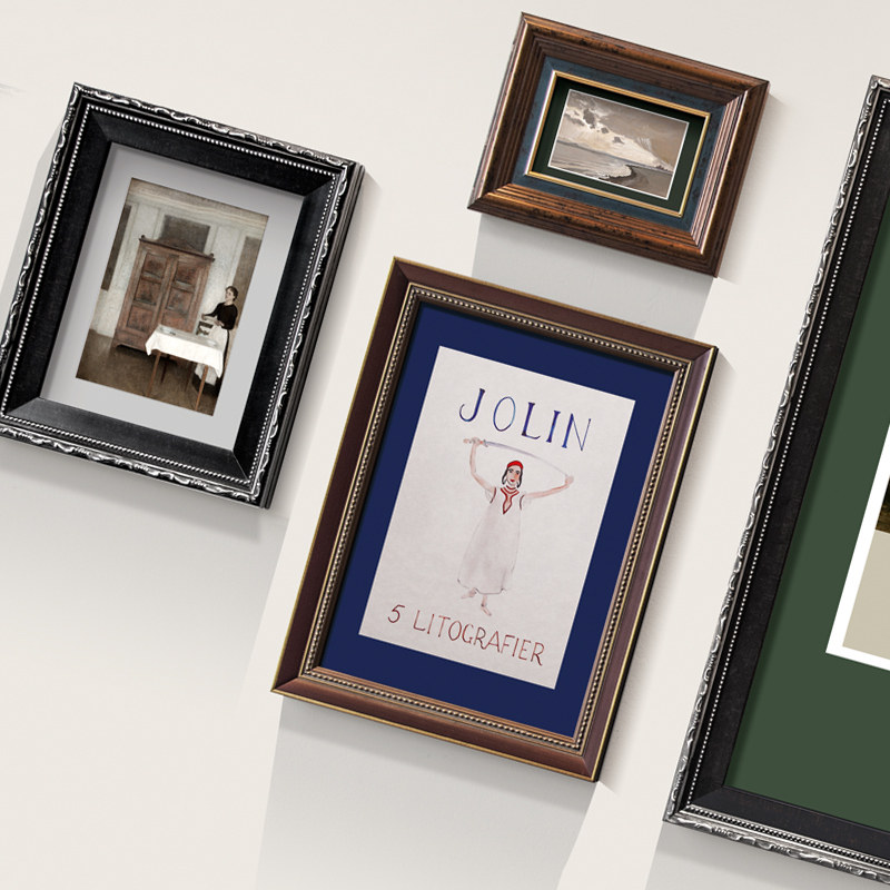American light luxury living room hanging wall Photo frame wall Retro old European background wall Decorative painting Photo frame combination photo wall