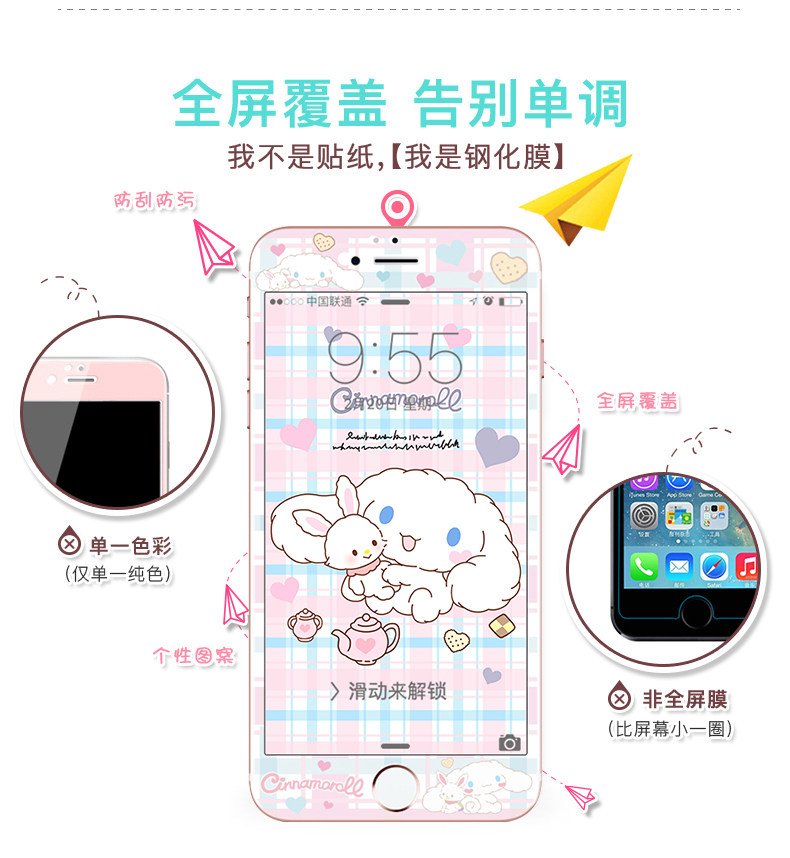 Yugui dog cartoon iPhone7Plus tempered film Apple 8P color film 6s full screen full coverage mobile phone protective film SE