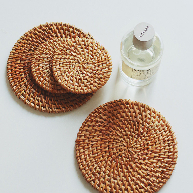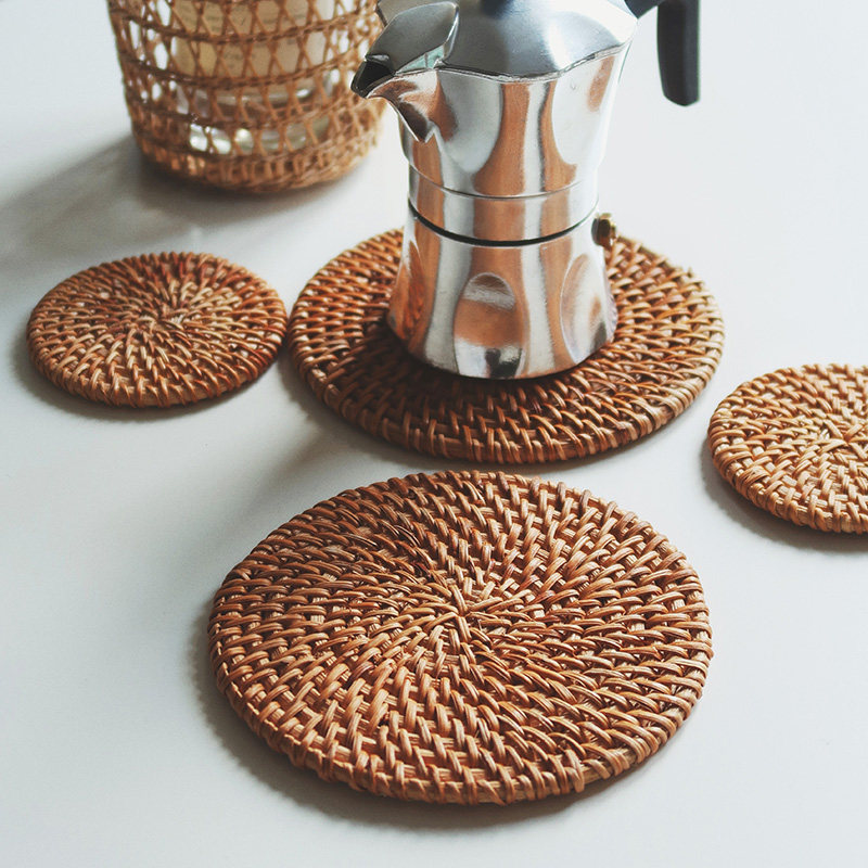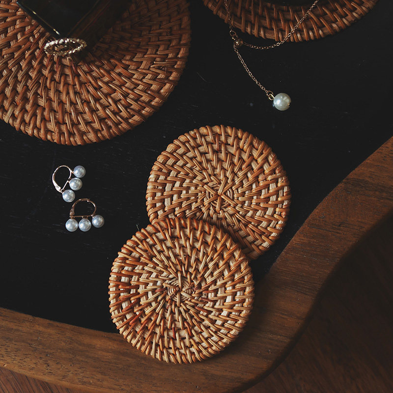 ins north eurowind handmade rattan woven round cup cushion day series retro room decorations photo photography background props-Taobao