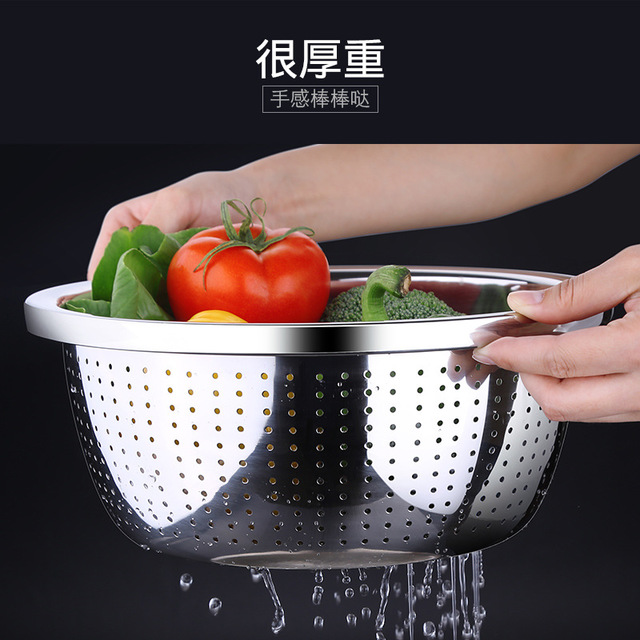 Washbasin leaching basket household basin rice sieve 304 stainless steel leak basin leaching basin wash fruit rice basin set