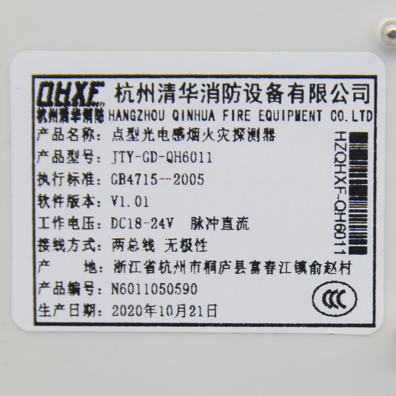 Hangzhou Tsinghua smoke alarm JTY-GD-QH6011 point type photoelectric smoke detector 3C certification
