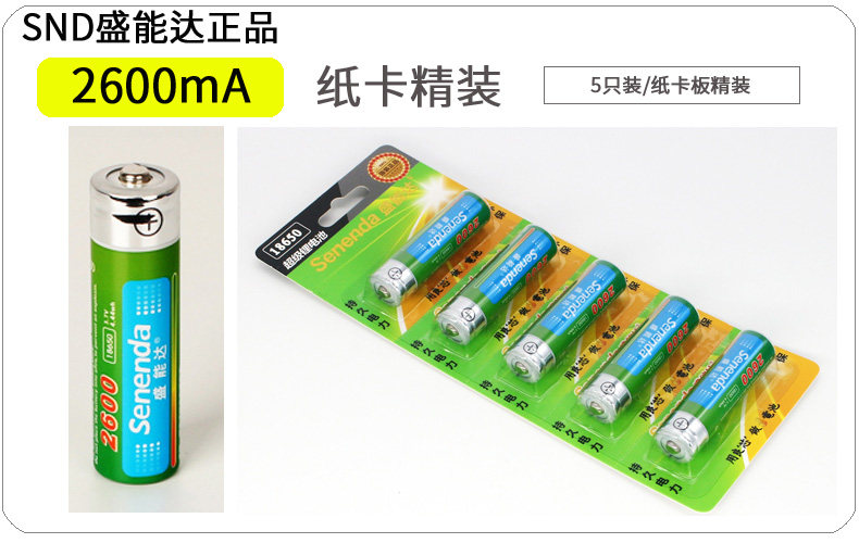 SND Shengnengda 3 7V rechargeable 2600 mAh 18650 lithium battery strong light flashlight watching machine audio battery