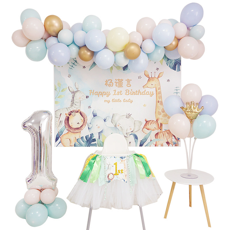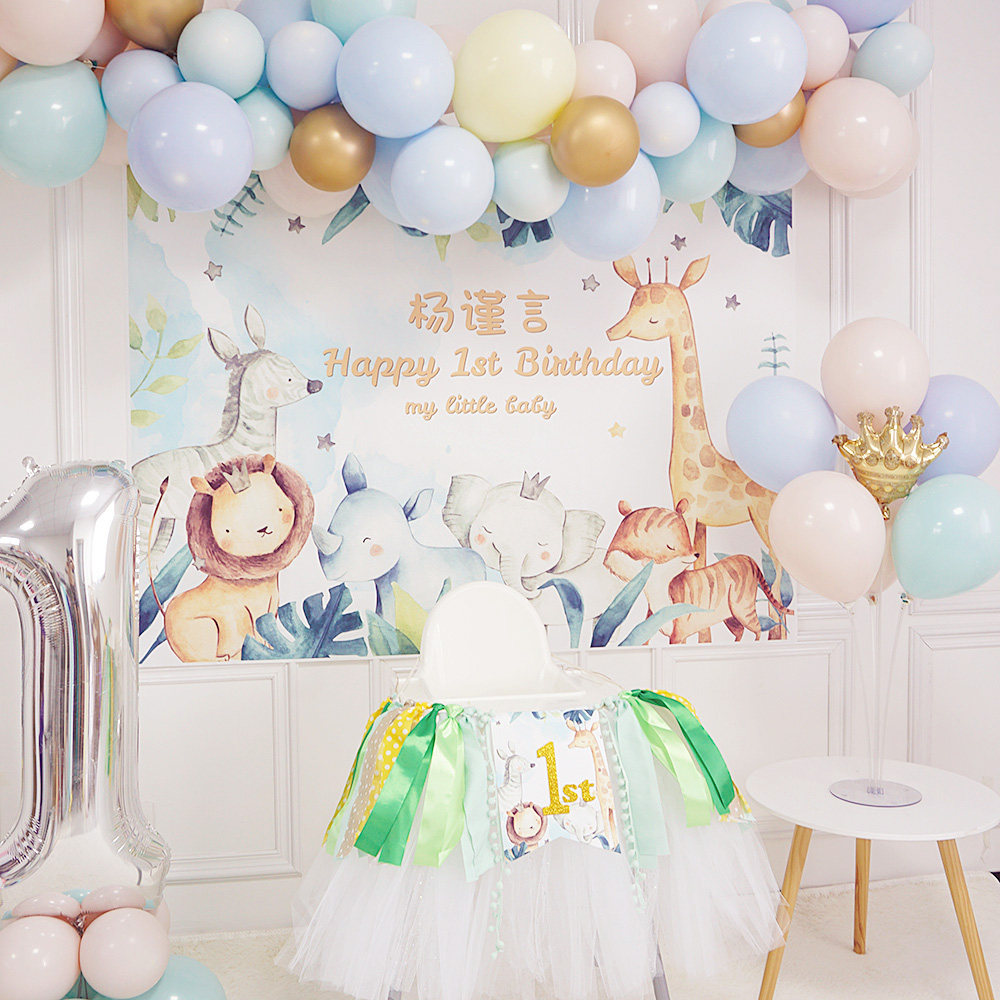 Watercolor animal birthday package Watercolor animal birthday background package Watercolor Macaron balloon chain Watercolor crown table floating 1 set of birthday posters 100-day poster 1 Watercolor year-old chair skirt set