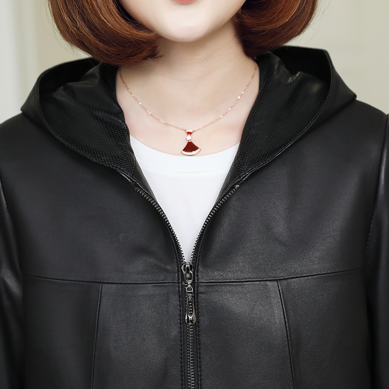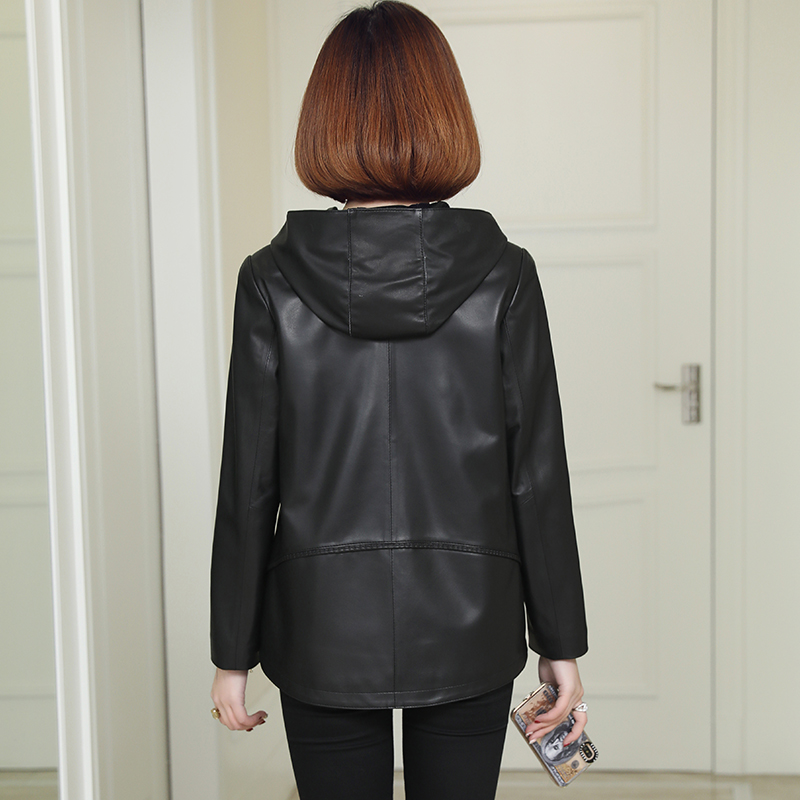 Large size leather leather jacket women's short 2021 spring and autumn loose high-end mother Haining single sheepskin jacket