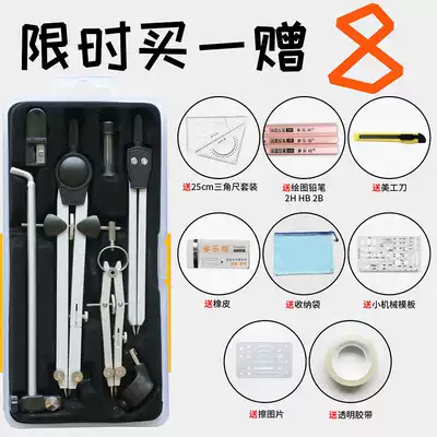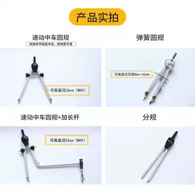 Multi-Music painting professional drawing compasses set large spring compasses metal multi-function students with mechanical construction design professional engineering drawing drawing tools can hold pen compass ruler set