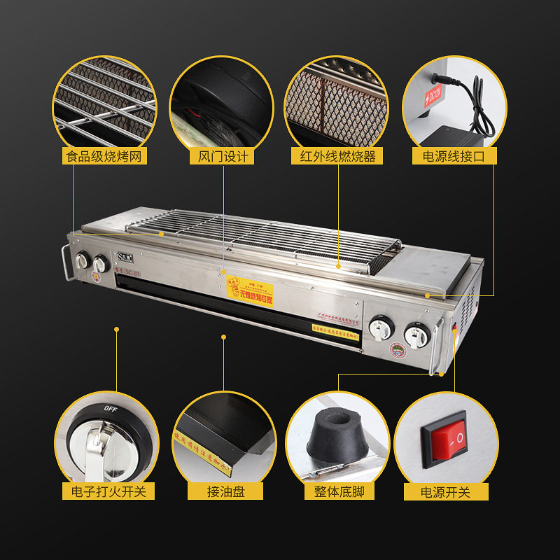 Commercial gas barbecue oven Shuangchi gas smokeless oyster skewers gluten stall oyster oven