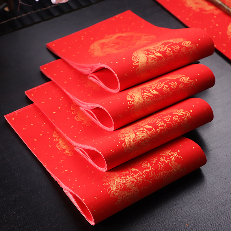 Perpetual Red Blank Handwritten Dragon Phoenix Couplets Paper Wholesale Spring Couplets Handwritten red paper Wedding Celebration of Giant Red Paper Calligraphy Sprinkle Gold Gentian with Thickened Four Feet Five Words Calligraphy half cooked and half cooked