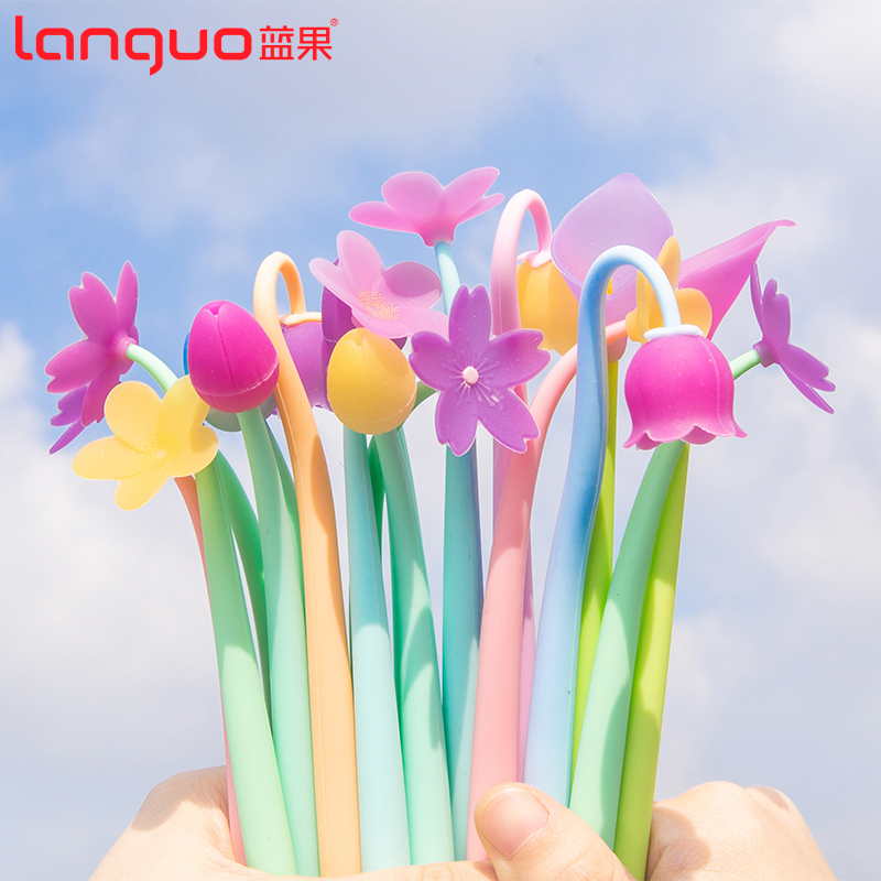 Blue Fruits Silicone Gel Discoloration Chic Pen Dreamy Melancholy Black Pens RED PEN 0 5 STATIONERY ITEMS CREATIVE PEN STUDENTS WITH KOREAN VERSION CREATIVE CUTE FLOWER PEN GIRL HEART PEN