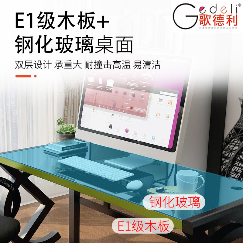 Song Deli Home Computer Desk Brief Modern Tempered Glass Desk Chair Composition Student Study Desk Desk