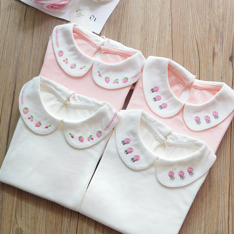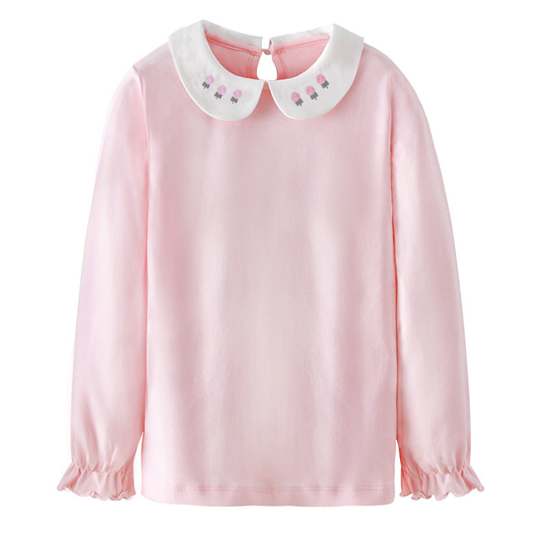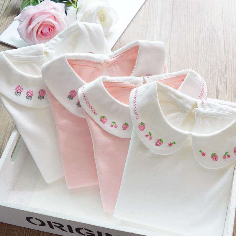 Mül Family Brief Girl Pure Cotton Embroidered Undershirt Child Dolls Collar Long Sleeve Pure color 100 lap t-shirt blouses-Taobao