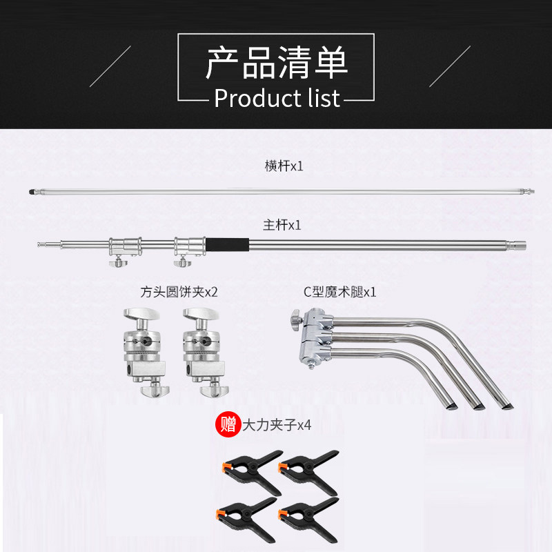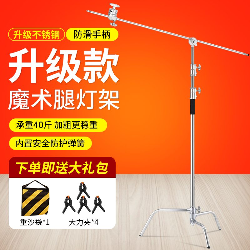 C type photography magic leg light stand stainless steel film and television frame oblique arm frame flag board bracket detachable studio photography light tripod crossbar crossbar light stand black thick background crossbar top light bracket