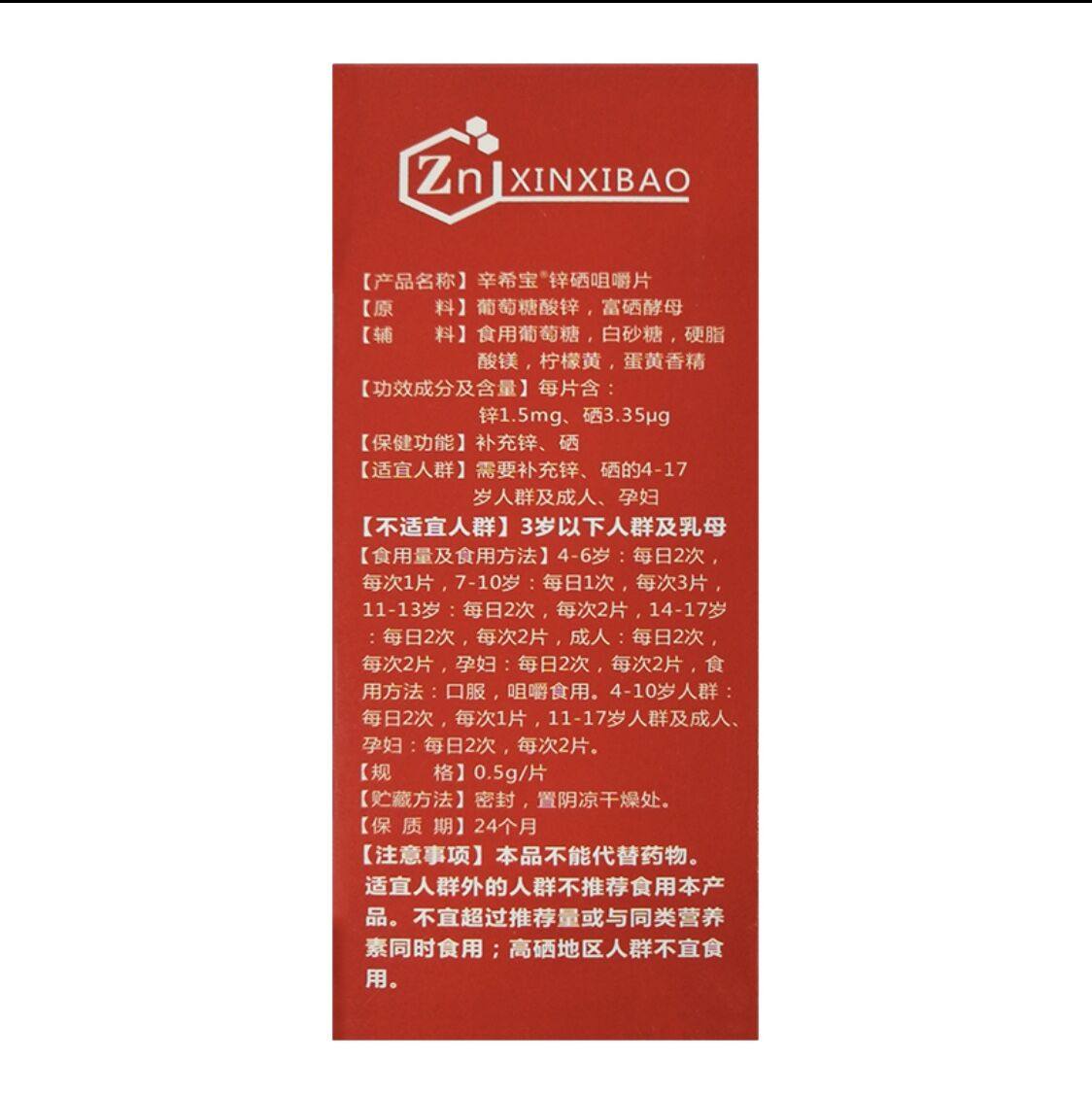 (Buy 1 shifa 2) Jufanmei Zinc Selenium Bao Xin Xi Bao Brand Xin Xi Bao Zinc Selenium Chewable Tablets 0.5g * 90 Tablets Bottle