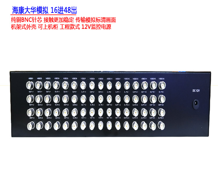 16-in 48-out BNC Video splitter Analog surveillance lens Splitter Rack-mounted 1-in-3 gain amplifier