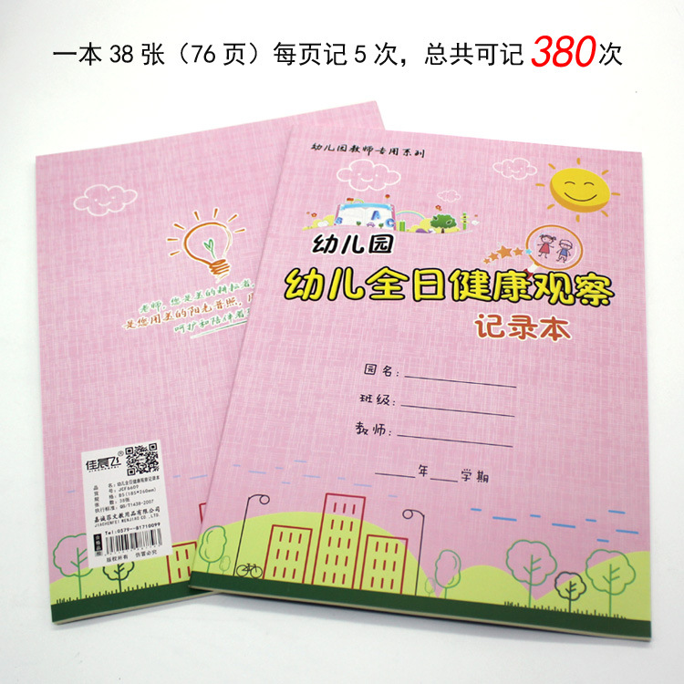 Kindergarten health observation record This extra thick coated paper color printing Jiachenfei Kindergarten routine manual