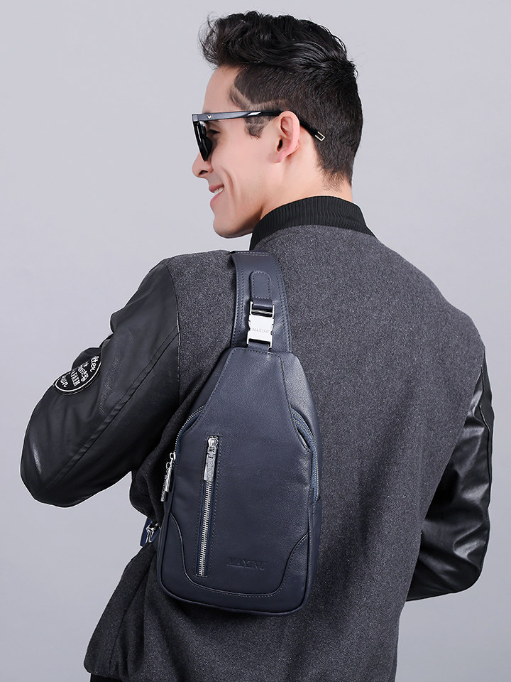 Marxima Head Layer Bull Leather Men's Chest Bag Genuine Leather Bag men's bag Single shoulder bag Small number minimalist Cortex Daddy Quarbag