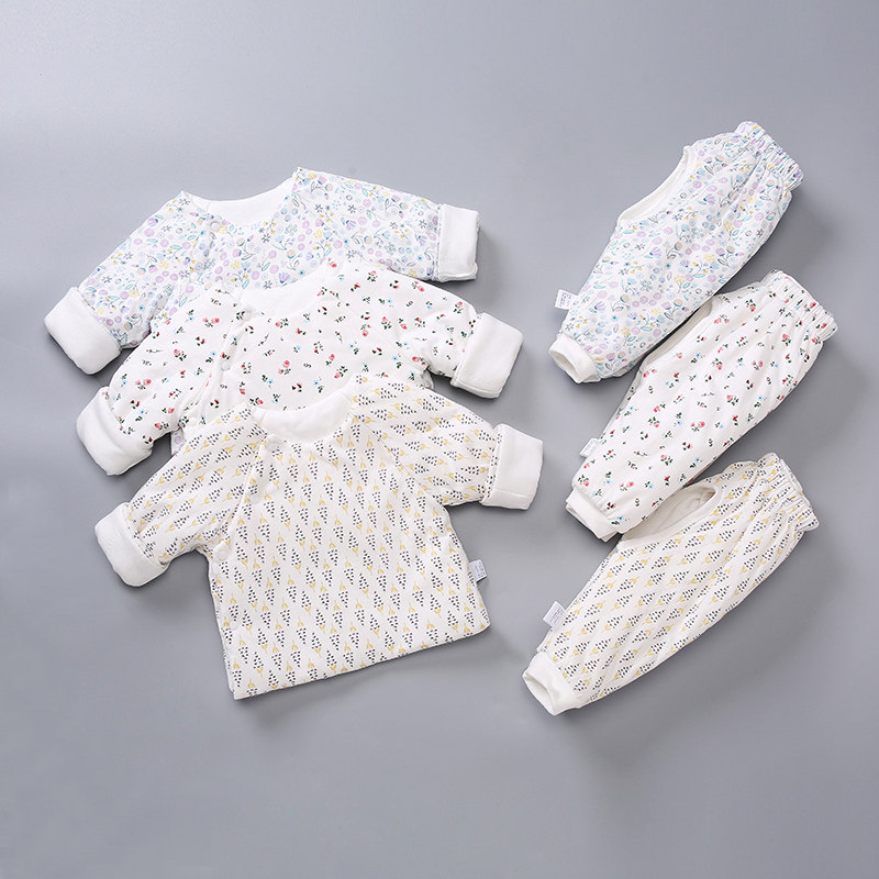 Newborn winter clothing baby clothes 0-3 months cotton suit 2 beginner baby warm and thin cotton clothes clip cotton two sets