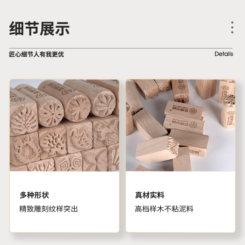 Creation space Wooden texture seal Children's creative handmade diy printing Pottery clay clay sculpture pottery tools