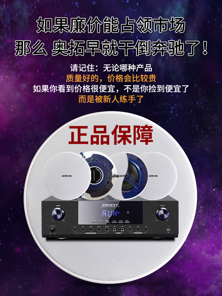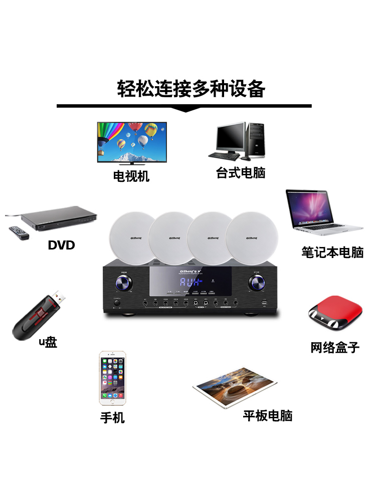 Qiran 5 1 coaxial fixed resistance three-dimensional surround ceiling speaker ceiling sound embedded in living room conference room broadcast HIFI heavy bass K song Home Theater smart background music host