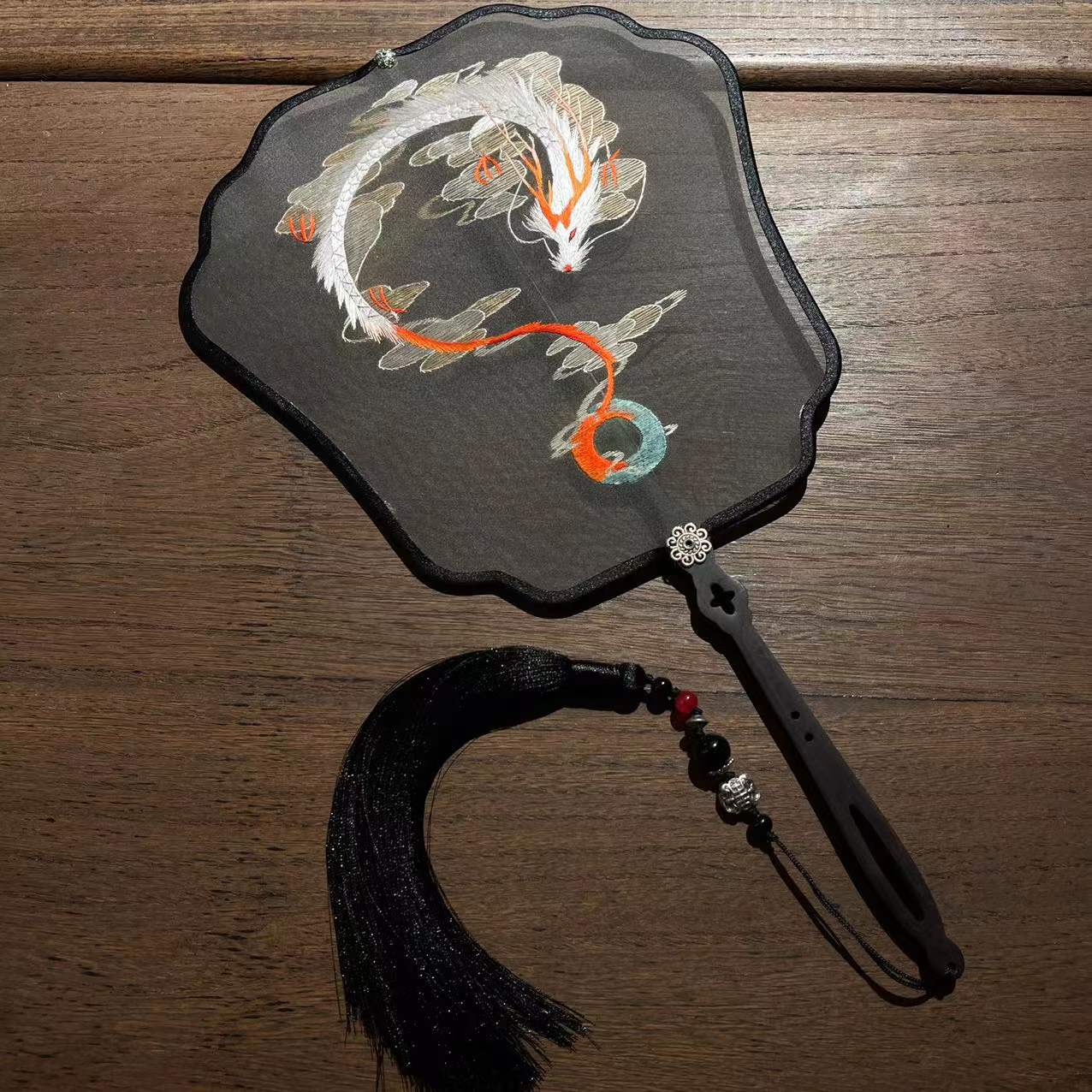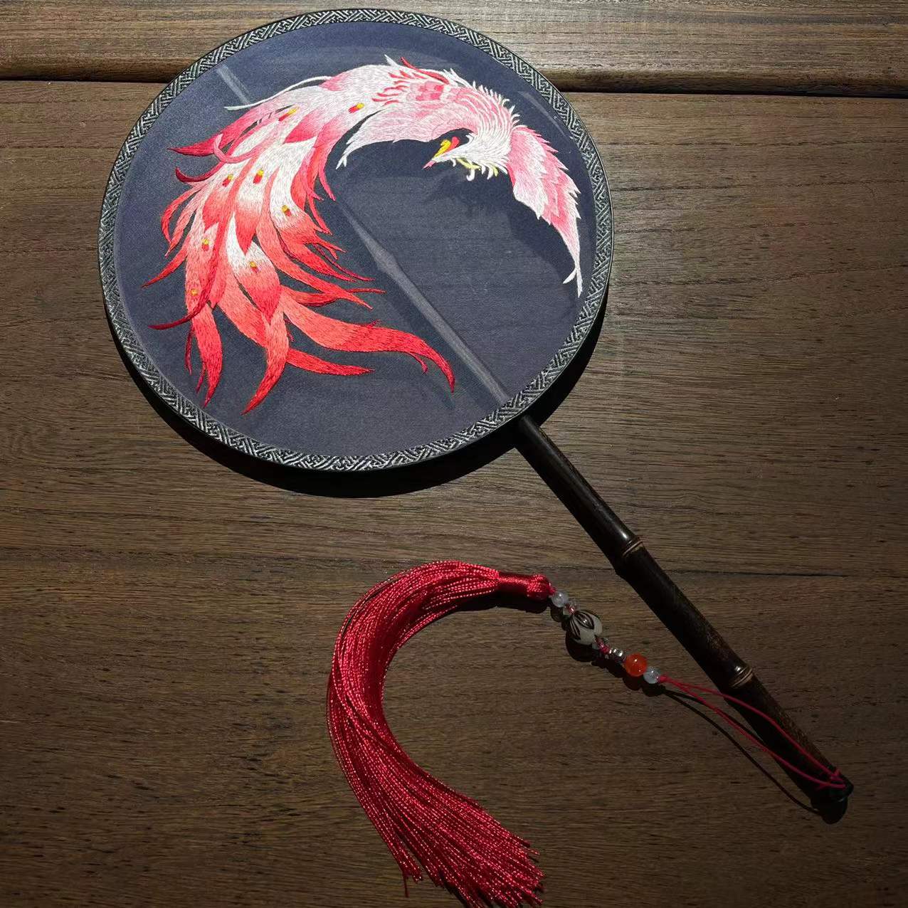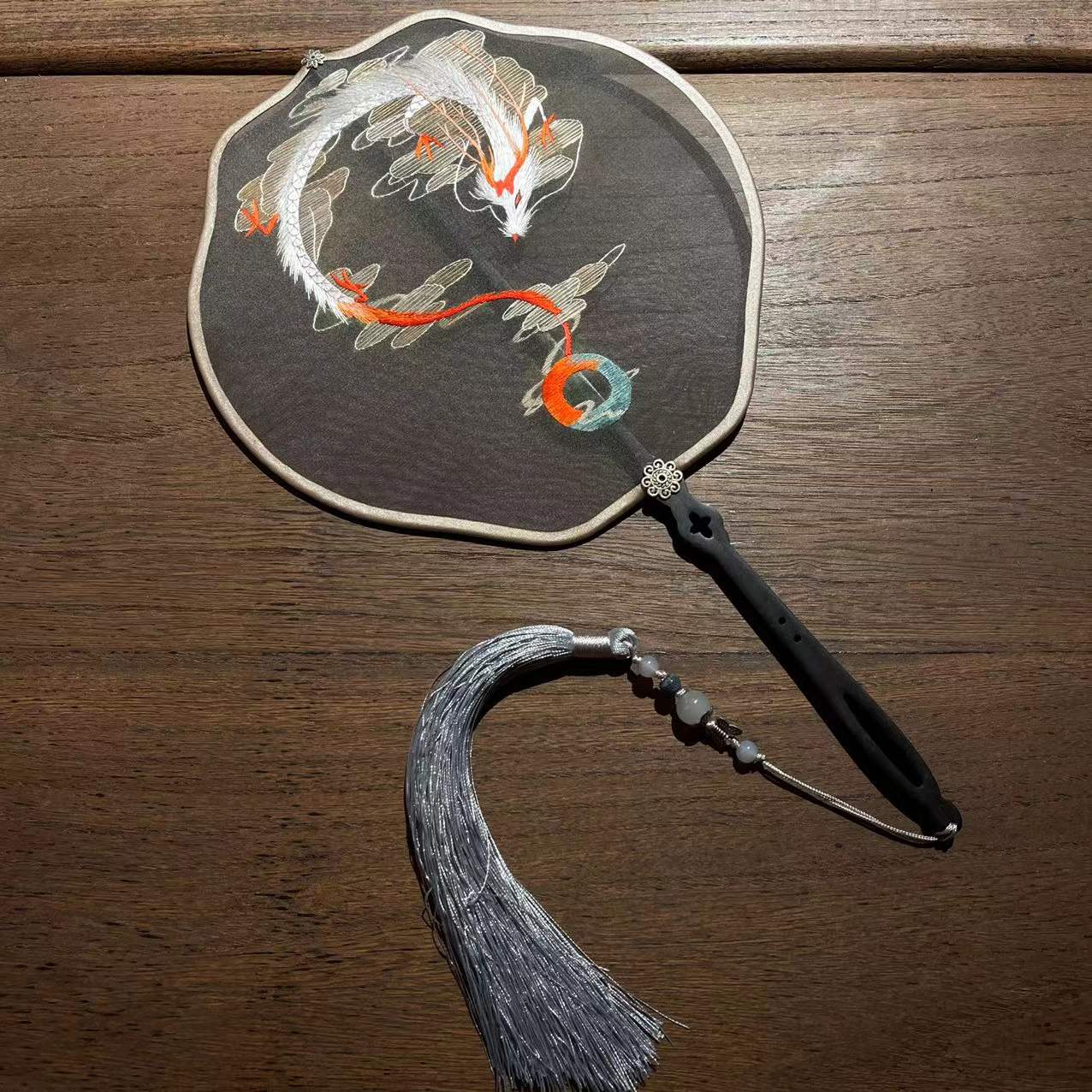 Suzhou embroidery new dragon and phoenix Hanfu double-sided embroidery embroidery round group fan gift to go abroad to take pictures and learn from me