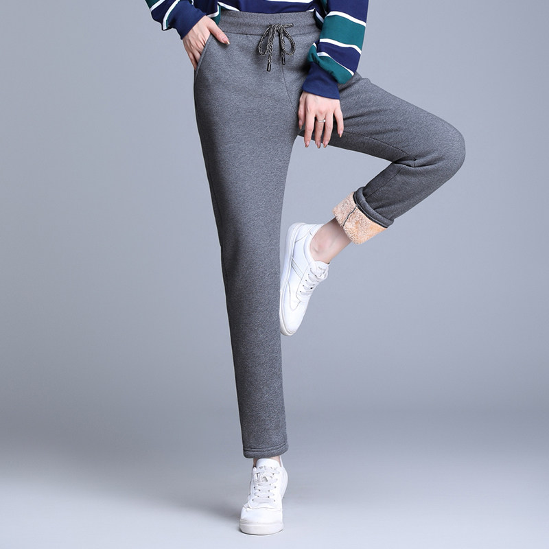 Plush harem pants women's casual pants 2022 new autumn and winter thickened sports pants lambswool pants women's outerwear cotton pants