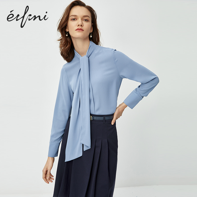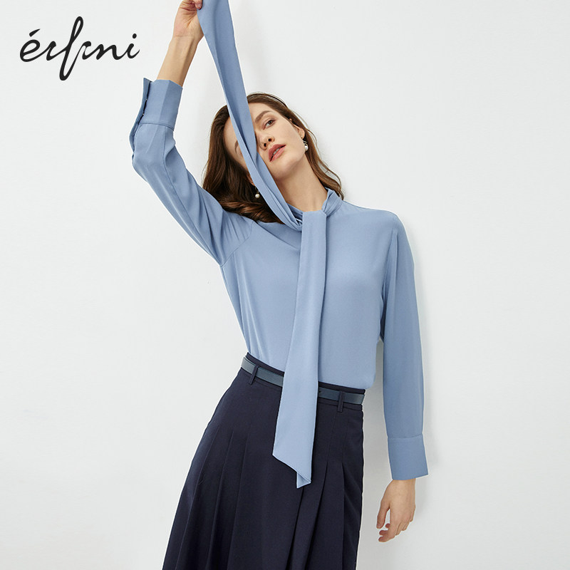 Haze blue spot Beige Spot haze blue chic streamer neckline beige wide-brimmed sleeve Keff design Haze blue two colors can be selected Haze blue highlights female elegance rice