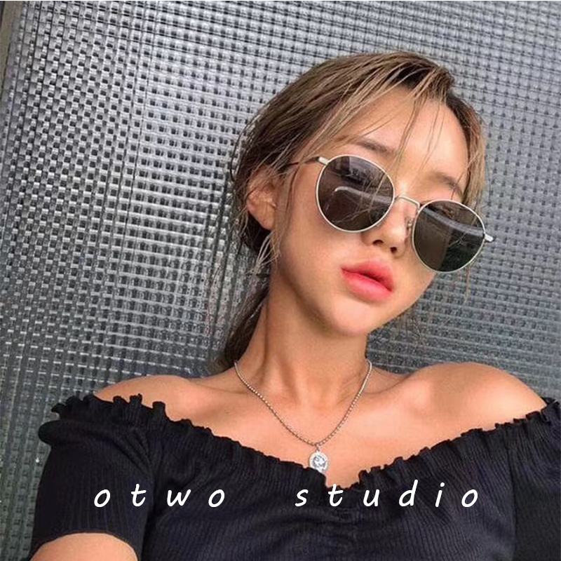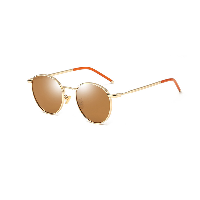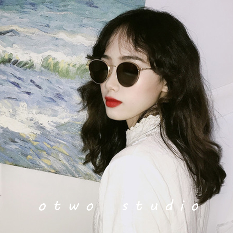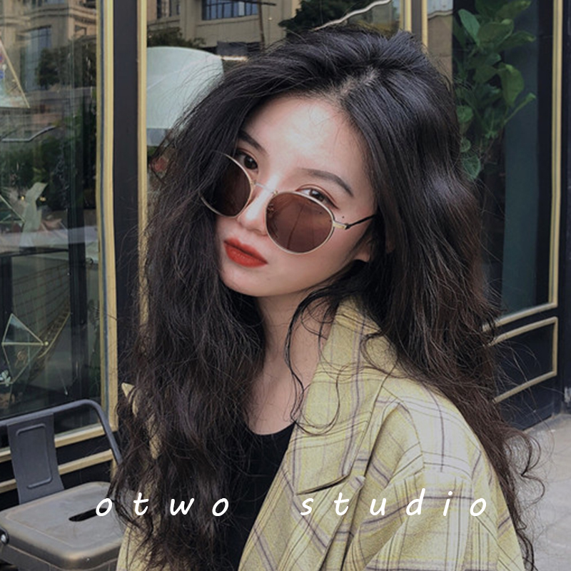 Korean version ins retro brown sunglasses women's summer oval texture gold silk edge sunglasses simple polarized holiday glasses