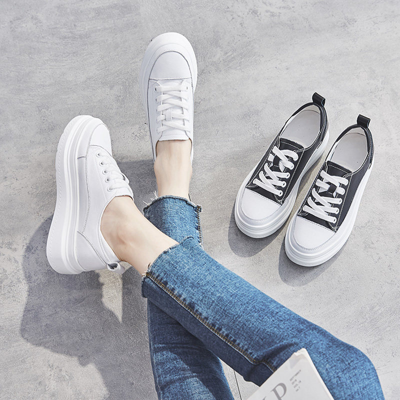 Thick Bottom Small White Shoes Spring 2021 Women Shoes Mesh Red 100 Hitch Plate Shoes Canvas Inside Heightening Genuine Leather Tide Shoes Pine Pastry