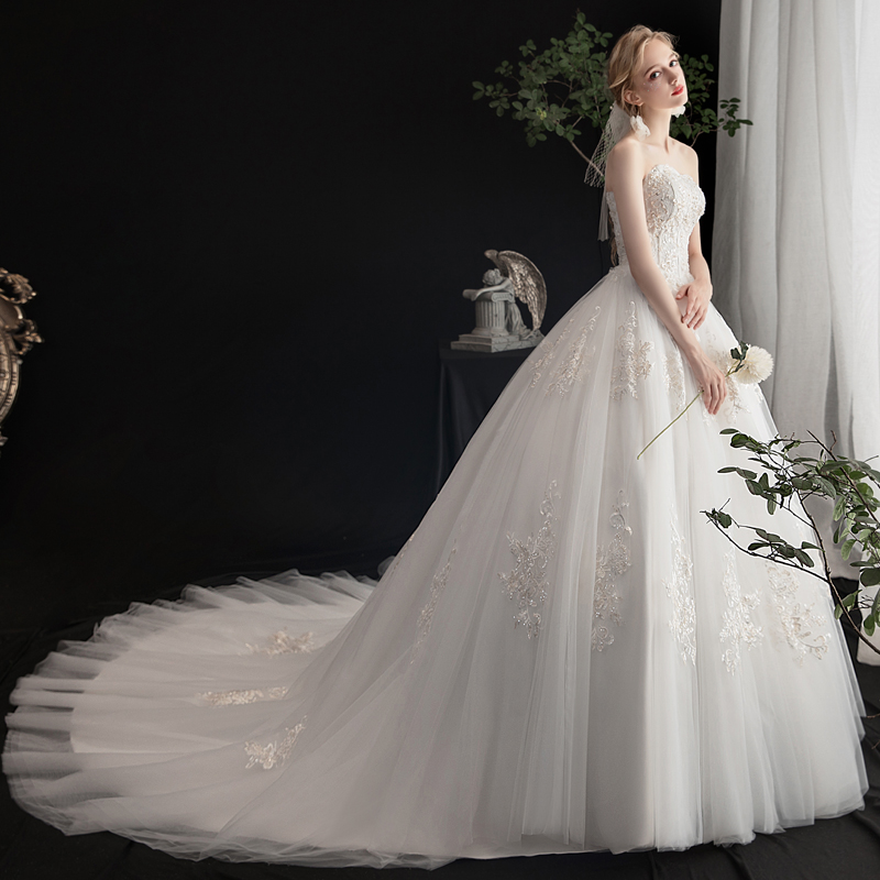 Bandeau main wedding dress 2020 new French bridal woman simple forest department super fairy dream tail skirt temperament light