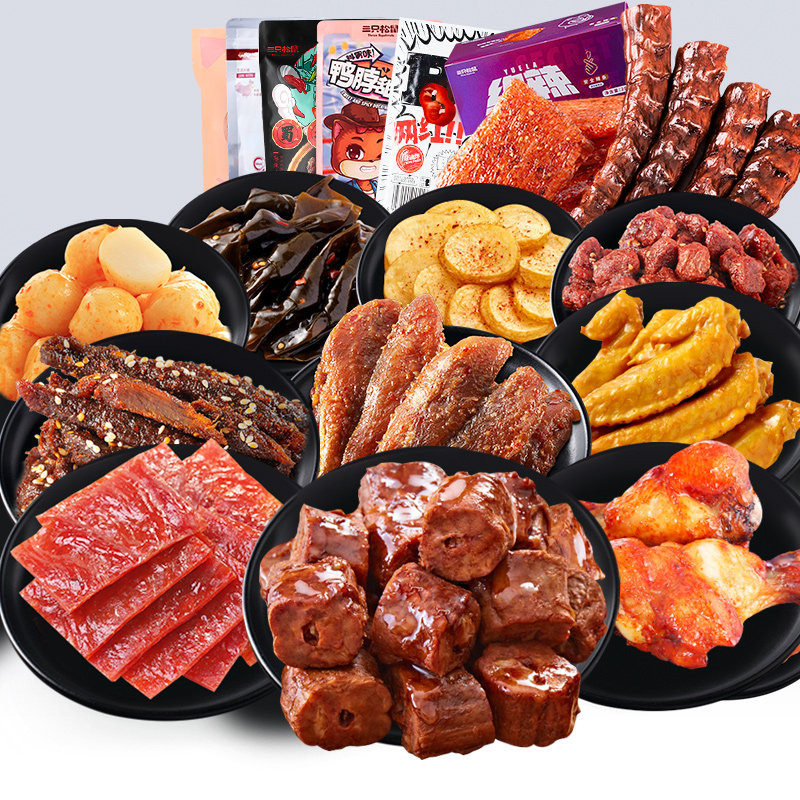 Recommended _ New product on the line(meat and vegetable matching)Spicy snack spree Weighing 500g(about 24 packets) Authentic spicy package(including 4 bags of Shu Xiang beef Q bullet dried beans, etc) 506