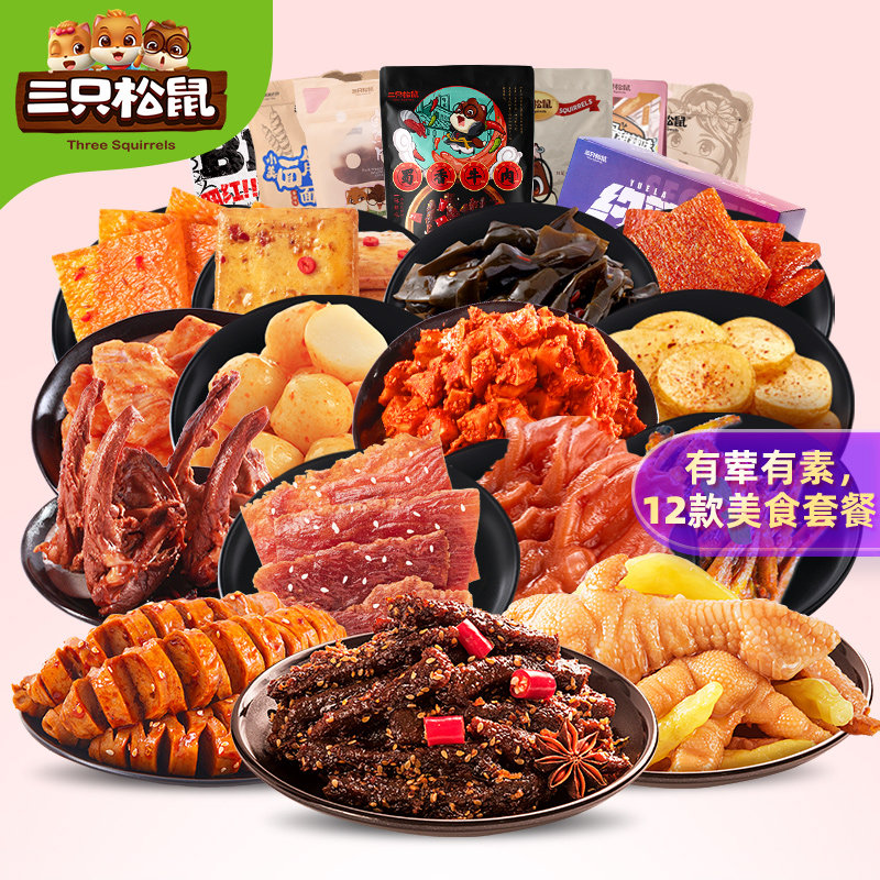 (Over 300 minus 200)Three squirrels _ Spicy snack spree _ Net red casual snack spicy duck neck box