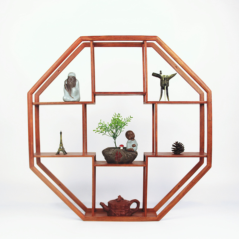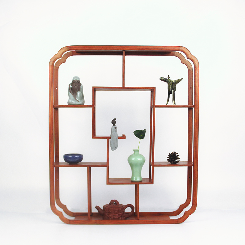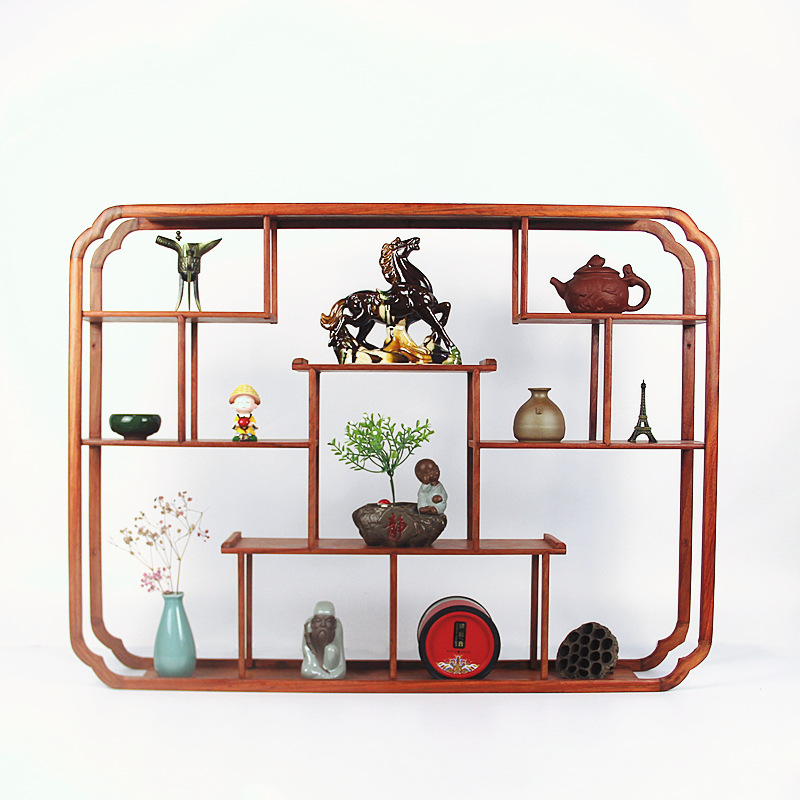 Rosewood Xiaobo ancient rack solid wood Chinese style wall hanging on the wall Duobaoge tea teapot shelf rack antique rack