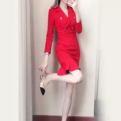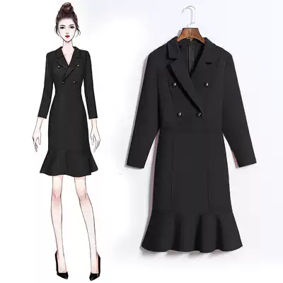 Professional dress female spring and autumn 2021 New temperament socialite Slim black long sleeve hip fishtail skirt