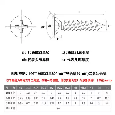 304 stainless steel self-tapping screw cross countersunk head screw lengthy flat head wood screw M3M4M5M6