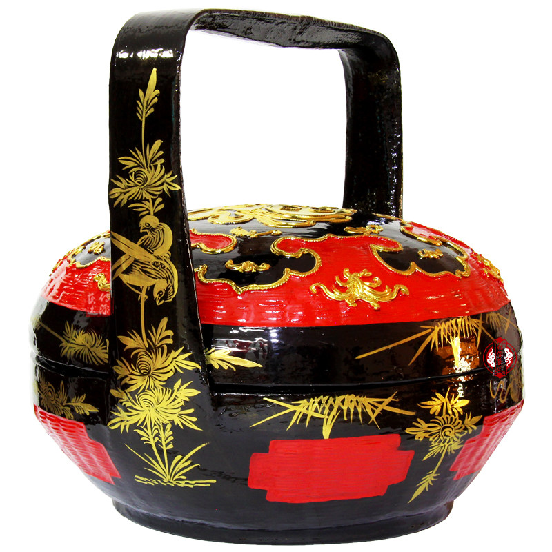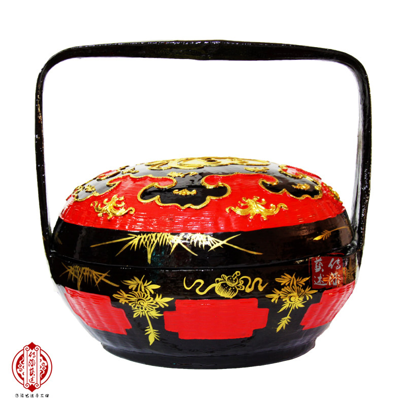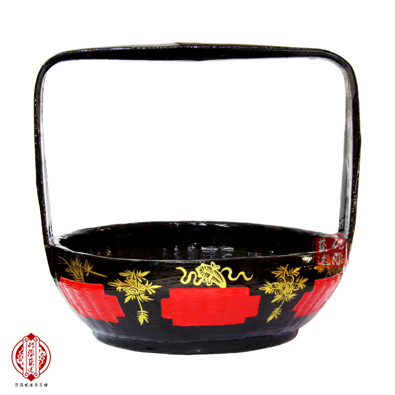 Yongchun Lacquer Basket Line Carved Fu Character Folk Handicraft Large Lacquer Wedding Basket Jewelry Basket Burning Incense Basket Bye Basket Lacquer Art