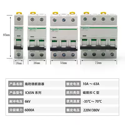 Schneider air switch ic65n circuit breaker 3p Open 2p household 63A A A 4p without leakage protector 1p