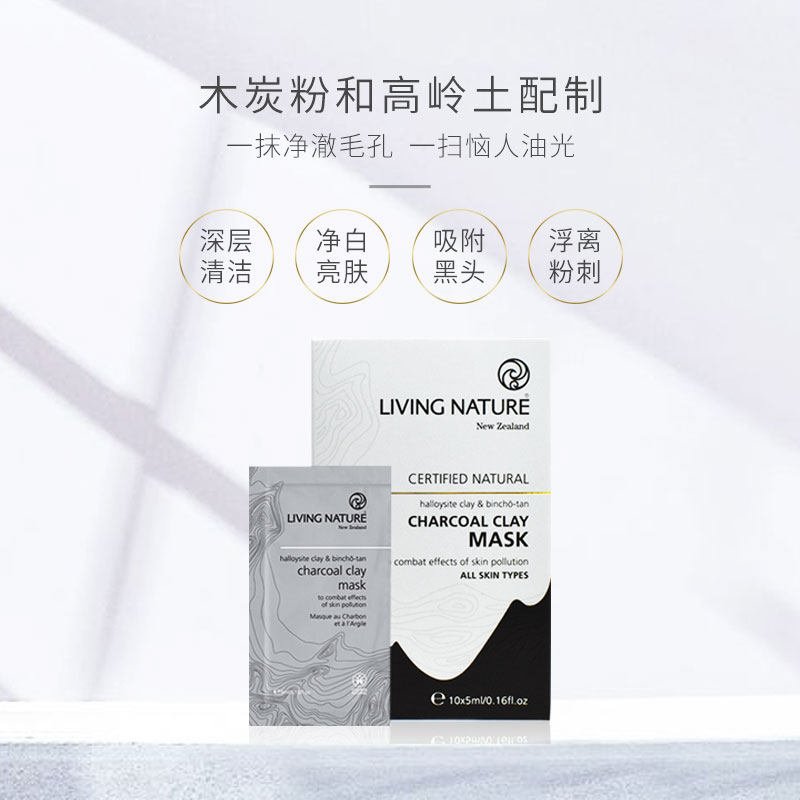 LivingNature Organic Charcoal Cleaning Mask Clear Black Head Pregnant Woman Clean Mud Film 5ml * 10 sheet box