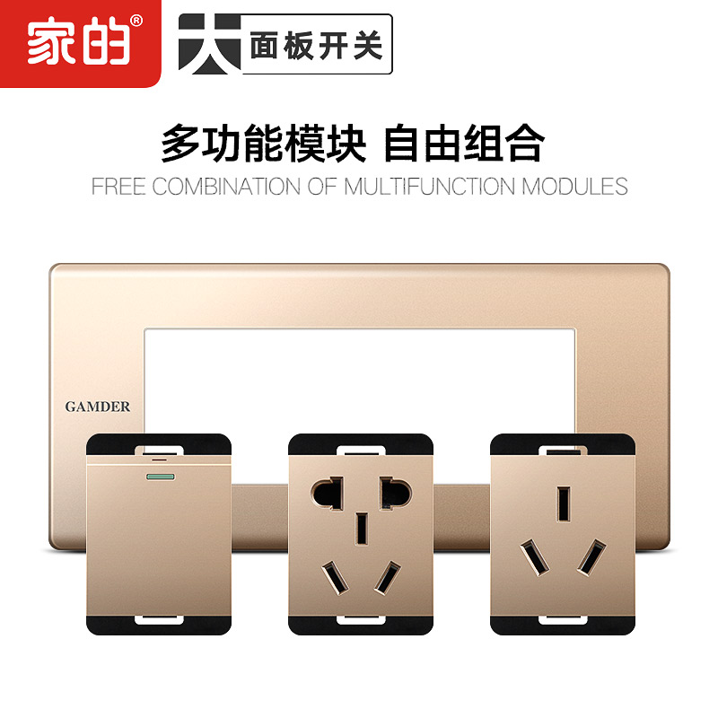 Home's Switch socket Panel 118 Type C6 Champagne Gold Home Dark dress 6 Six holes Nine 9 holes twelve 12 Condor