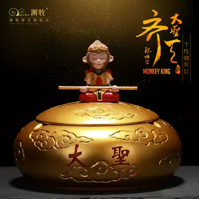 Chinese style ashtray Creative personality trend retro household living room with lid anti-fly ash office large dragon ashtray