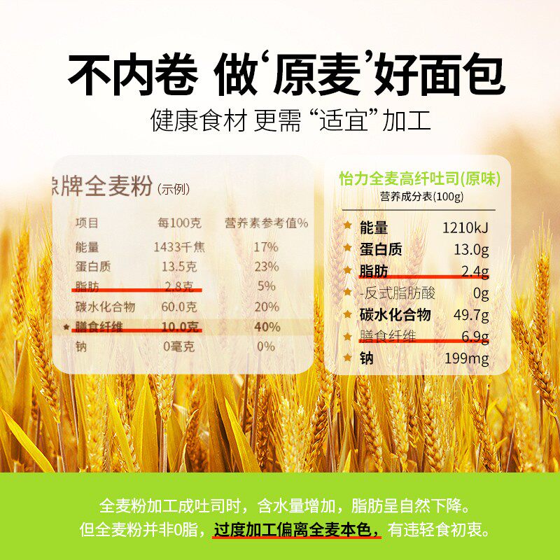Yili Low-fat Toast Whole Wheat Bread Slice No Sugar No Oil Baking Breakfast Nutrition Student Food FCL