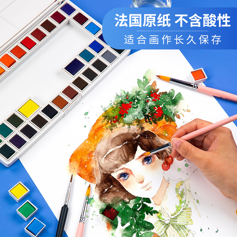 French Kangsong watercolor paper 8k4k gouache paper 8 open painting paper 300g fine grain fine art students special painting paper 4 open large sheet Babi pine watercolor paper a4a3 watercolor book with 32k picture book