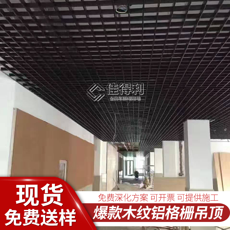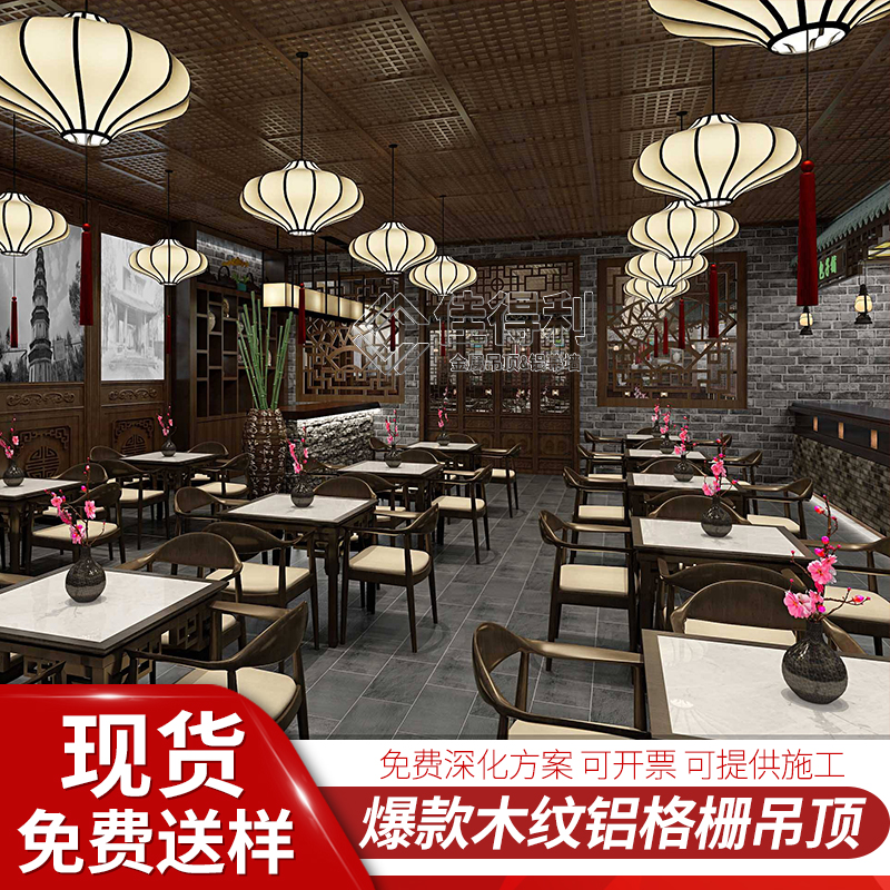 Aluminum alloy imitation wood grain aluminum grille dining room 4S Shop wood grain aluminum grille smallpox fireproof moisture-proof grape shelf suspended ceiling
