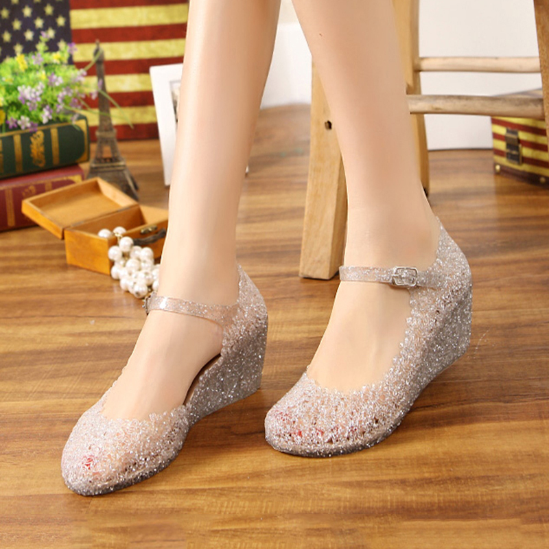 Sandshoes Women Fashion 2021 New Summer Plastic Dongle Shoes Baotou Jelly Shoe Slopes Heel Beach Shoe Beach