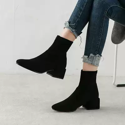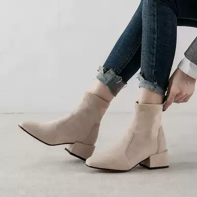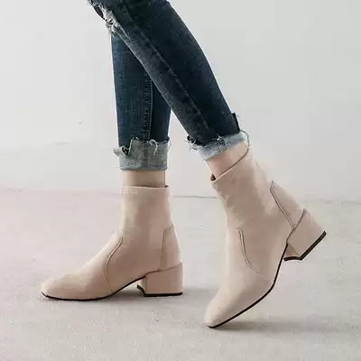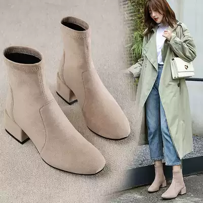 European station 2021 autumn and winter New Net red short boots women thin boots thick heel heel short tube Joker elastic Martin boots