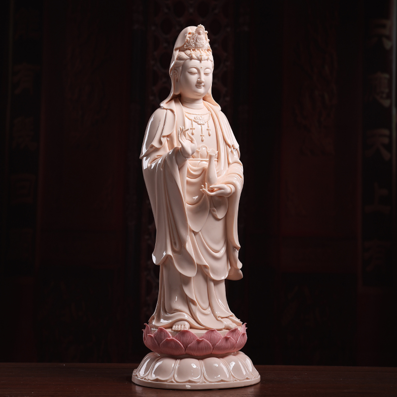 Daiyu Tong Guanyin Buddha statue is dedicated to home domestic ceramic pendulum decoration 18-inch Ligulian South China Sea View of the Bodhisattva statue
